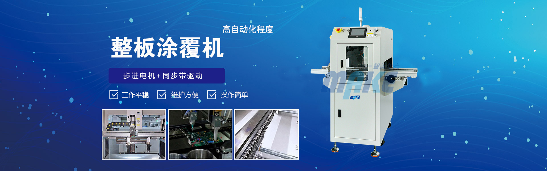 公司产品广泛应用于LED 、驱动电源、通讯、工控、汽车电子、仪器仪表、电子电器、消费电子、军工、医疗等领域。主要有三防涂覆机、灌胶机、IR固化炉、UV固化炉以及SMT周边设备等系列标准自动化及非标自动化设备,设备通过IS9001品质管理体系认证。智美尔克有近十年的流体类喷涂设备研发与生产的从业经验,可以根据客户的不同需求,提供最佳的解决方案。